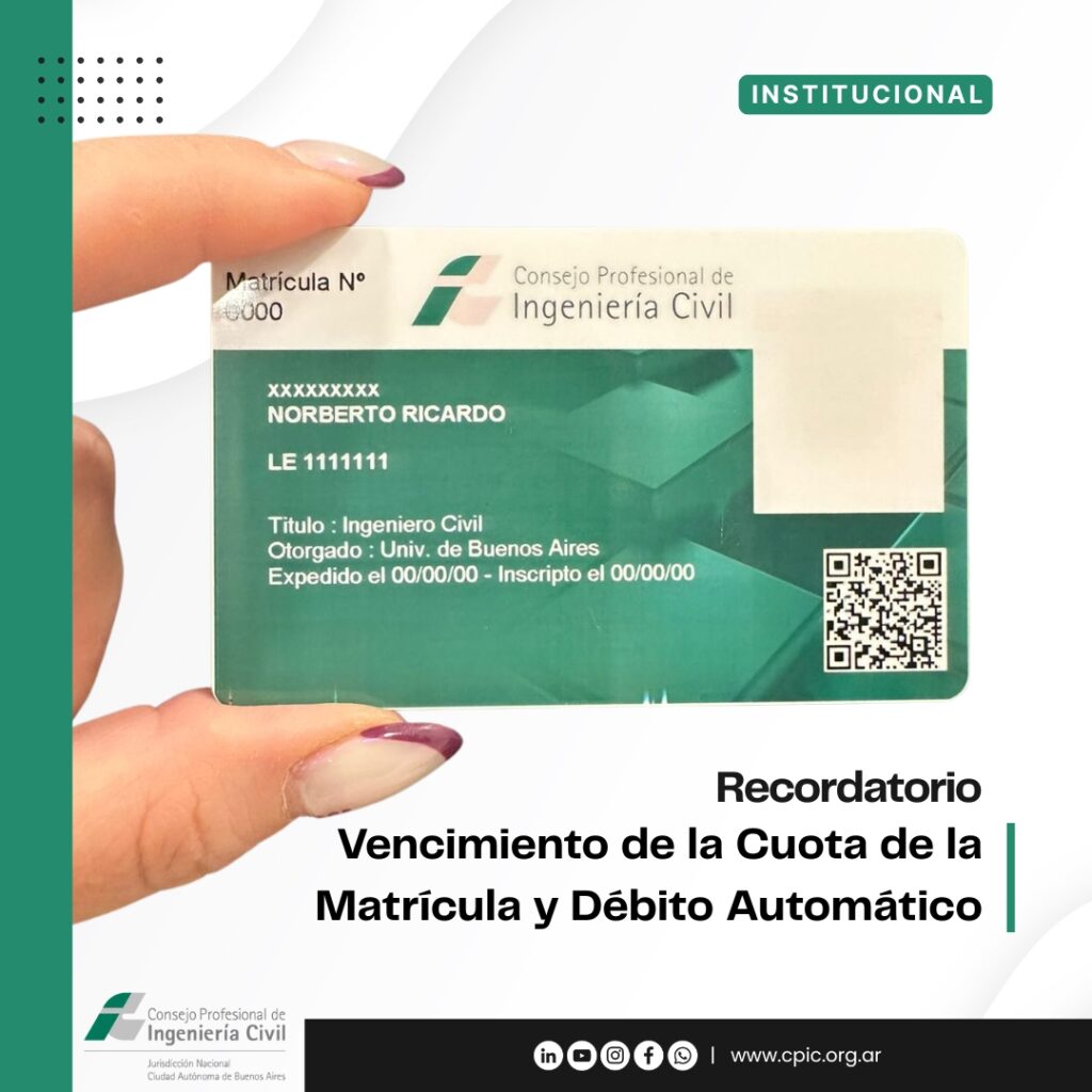 El Consejo Profesional de Ingeniería Civil (CPIC), de jurisdicción nacional y de la ciudad de Buenos Aires, comunica las últimas normativas de interés para su matrícula. Código Fiscal CABA: cambios relevantes para la ingeniería civil Mediante la Ley Nº 6.926, sancionada el 27 de noviembre de 2025, promulgada por el Decreto Nº 479/25 y publicada en el Boletín Oficial de la Ciudad el 19 de diciembre de 2025, el Gobierno de la Ciudad Autónoma de Buenos Aires introdujo numerosas modificaciones al Código Fiscal, con vigencia a partir del 1º de enero de 2026. Entre los aspectos de mayor interés para la ingeniería civil, se destacan las disposiciones vinculadas a la actividad constructiva y al desarrollo urbano. La norma ratifica la aplicación de tasas derivadas de la fiscalización de obras menores, medias y mayores, conforme a los permisos otorgados y a lo establecido en la Ley Impositiva vigente. Asimismo, se actualiza el régimen del Derecho para el Desarrollo Urbano y el Hábitat Sustentable, manteniéndose la posibilidad de cancelarlo mediante Certificados de Capacidad Constructiva Adicional Digital y estableciéndose un descuento del 30 % por pago anticipado previo al permiso de obra nueva. Por otra parte, la ley confirma la exclusión de la actividad de la construcción del Régimen Simplificado del Impuesto sobre los Ingresos Brutos, reafirmando su encuadre dentro del régimen general. Estas modificaciones configuran un marco normativo de referencia para los profesionales de la ingeniería civil, con impacto directo en la planificación, gestión y ejecución de obras en la Ciudad. Normativa y anexos:https://documentosboletinoficial.buenosaires.gob.ar/publico/ck_PL-LEY-LCABA-LCBA-6926-25-7269.pdfhttps://documentosboletinoficial.buenosaires.gob.ar/publico/PL-LEY-LCABA-LCBA-6926-25-ANX-1.pdfhttps://documentosboletinoficial.buenosaires.gob.ar/publico/PL-LEY-LCABA-LCBA-6926-25-ANX.pdf Ley N.° 6927 – Ley Impositiva de la Ciudad Autónoma de Buenos Aires (Ejercicio 2026) La Legislatura de la Ciudad Autónoma de Buenos Aires sancionó la Ley N° 6927, mediante la cual se establece que, a partir del año 2026, los impuestos, tasas, gravámenes y demás contribuciones de la Ciudad se abonarán conforme a las alícuotas y aforos determinados en la Ley Impositiva, que integra la norma como anexo. La ley dispone su entrada en vigencia el 1° de enero de 2026, constituyéndose en el marco tributario anual aplicable en el ámbito de la Ciudad. La norma fue promulgada por el Decreto N° 480/25 y publicada en el Boletín Oficial de la Ciudad Autónoma de Buenos Aires el 19 de diciembre de 2025 (N° 7269). Esta legislación resulta de interés para el ejercicio profesional, en tanto define el esquema impositivo vigente para el próximo período fiscal. Normativa y anexo: https://documentosboletinoficial.buenosaires.gob.ar/publico/ck_PL-LEY-LCABA-LCBA-6927-25-7269.pdfhttps://documentosboletinoficial.buenosaires.gob.ar/publico/PL-LEY-LCABA-LCBA-6927-25-ANX.pdf Ley Arancelaria CABA 2026: marco aplicable a derechos y tasas Mediante la Ley Nº 6.928, sancionada el 27 de noviembre de 2025, promulgada por el Decreto Nº 481/25 y publicada en el Boletín Oficial de la Ciudad el 19 de diciembre de 2025, el Gobierno de la Ciudad Autónoma de Buenos Aires aprobó la Ley Arancelaria que regirá a partir del 1º de enero de 2026. La norma establece que los derechos, rentas diversas, arrendamientos, cánones y demás tarifas de la Ciudad deberán abonarse conforme a las alícuotas y valores previstos en el Anexo que integra la ley, en concordancia con lo dispuesto por el Código Fiscal. Este marco normativo resulta de interés para la ingeniería civil, en tanto fija los valores de referencia aplicables a distintos trámites, derechos y servicios vinculados a la actividad profesional, obras y desarrollos urbanos, que serán de aplicación durante el ejercicio fiscal 2026. Normativa y anexo:https://documentosboletinoficial.buenosaires.gob.ar/publico/ck_PL-LEY-LCABA-LCBA-6928-25-7269.pdfhttps://documentosboletinoficial.buenosaires.gob.ar/publico/PL-LEY-LCABA-LCBA-6928-25-ANX.pdf