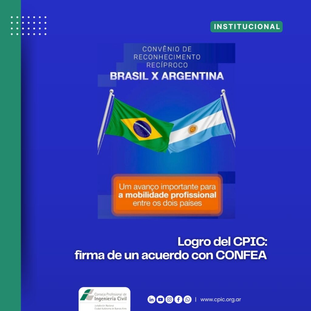 En un paso decisivo para la ingeniería regional, nuestro Consejo Profesional de Ingeniería Civil ha firmado un convenio de reconocimiento recíproco de habilitación profesional con el CONFEA (Conselho Federal de Engenharia e Agronomia) de Brasil marcando un hito en la integración entre Argentina y Brasil.
