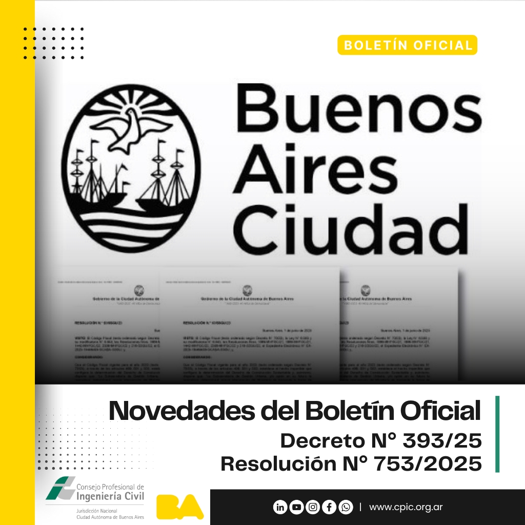 El Consejo Profesional de Ingeniería Civil (CPIC), de jurisdicción nacional y de la ciudad de Buenos Aires, comunica las últimas normativas de interés para su matrícula.