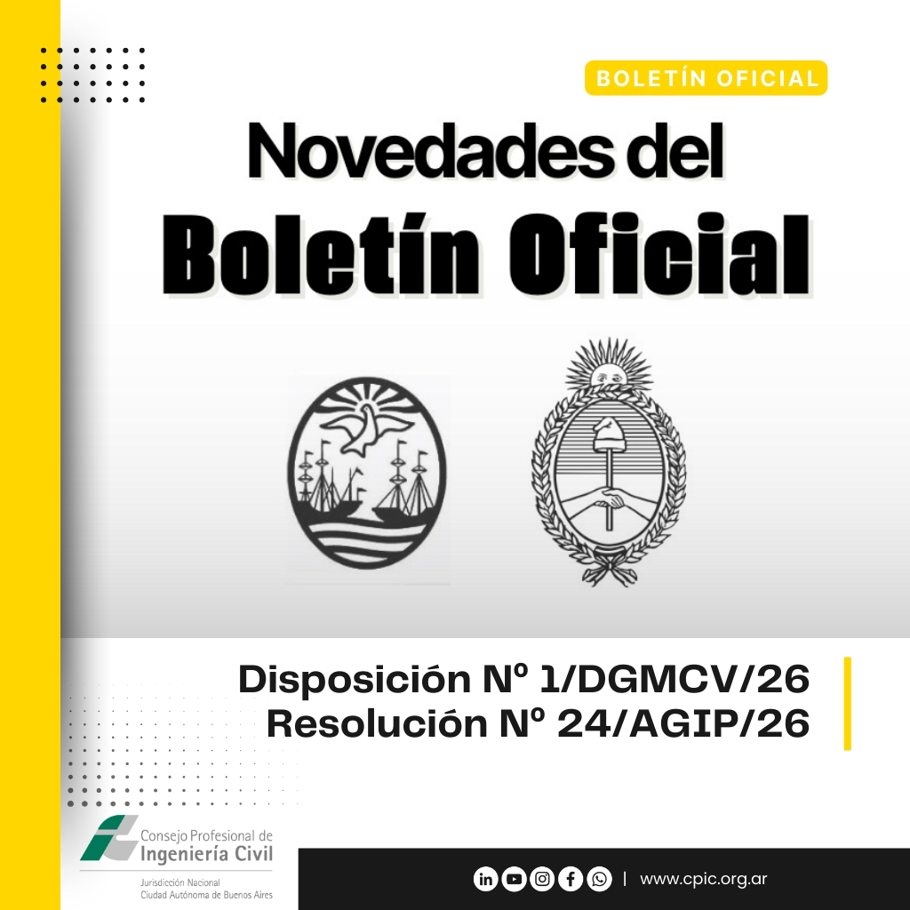 El Consejo Profesional de Ingeniería Civil (CPIC), de jurisdicción nacional y de la ciudad de Buenos Aires, comunica las últimas normativas de interés para su matrícula.