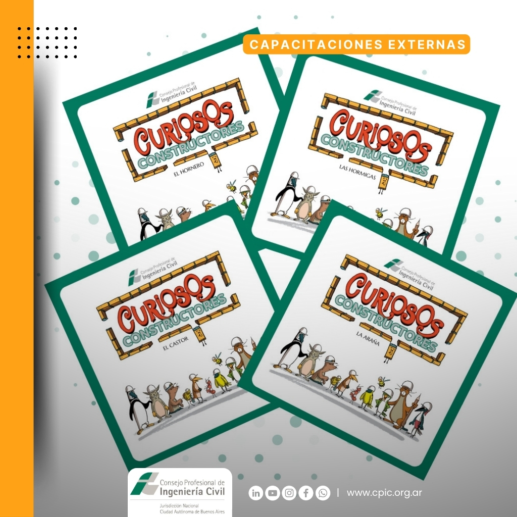 La serie, producida por nuestro Consejo Profesional de Ingeniería Civil (CPIC), está integrada por cuatro títulos —La Araña, El Hornero, Las Hormigas y El Castor— que, mediante relatos breves e ilustraciones atractivas, acercan a niñas y niños al fascinante mundo de la construcción.