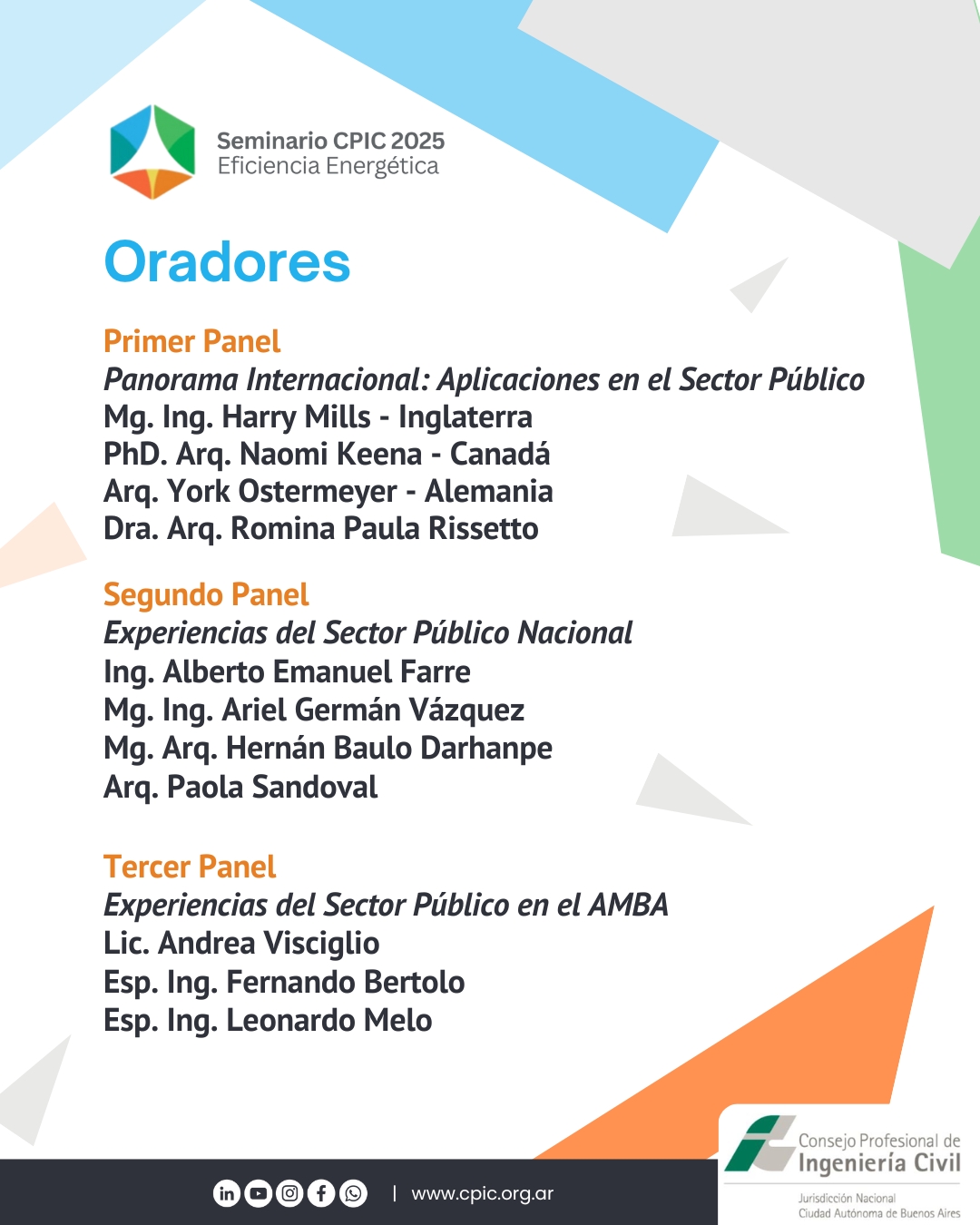 El tema elegido para la edición 2025 de este Seminario será: “Eficiencia Energética en el Sector Público”. El encuentro será virtual a través de la plataforma Zoom y presencial en el auditorio Ing. Civil Jorge Sciammarella de nuestro Consejo, ubicado en la calle Adolfo Alsina 430 de la CABA.