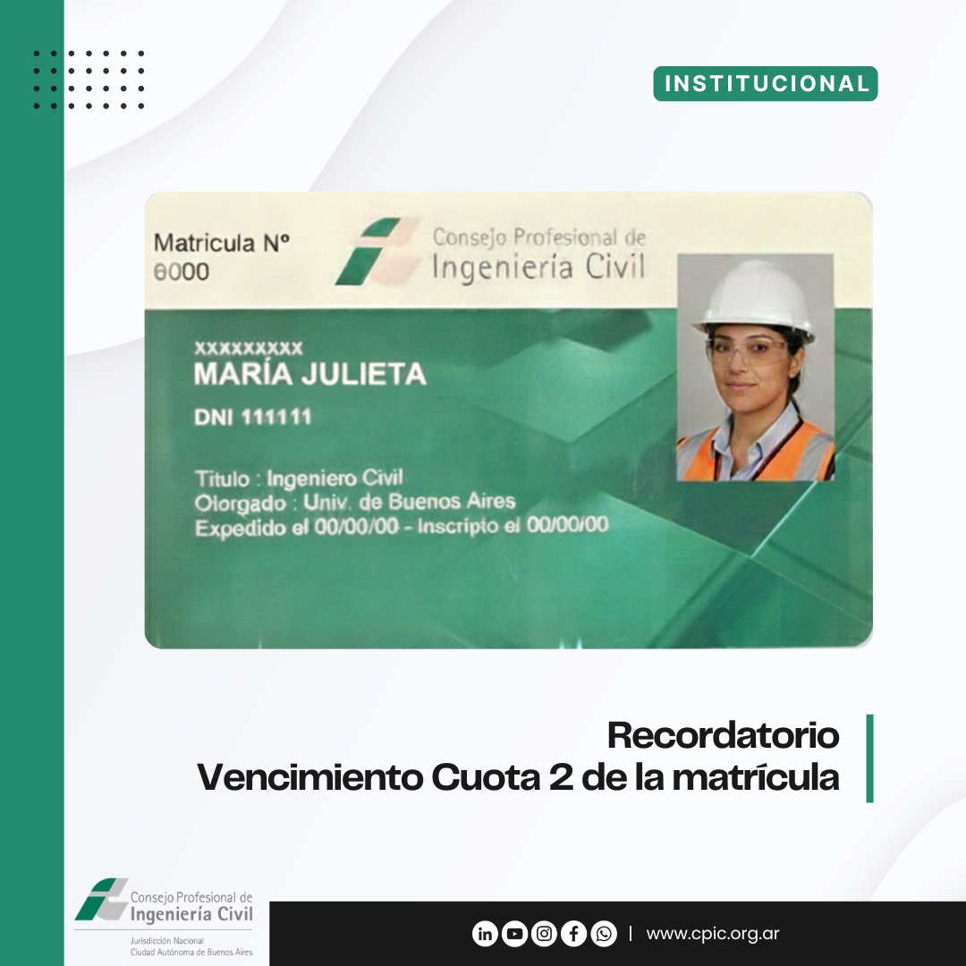 El Consejo Profesional de Ingeniería Civil (CPIC) recuerda a su matrícula sobre …